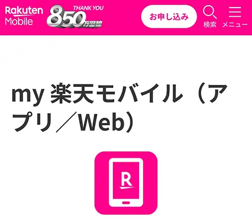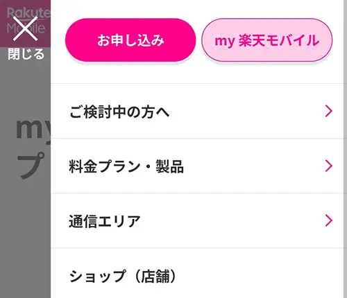 2.右上の『メニュー』から『my楽天モバイル』を選択