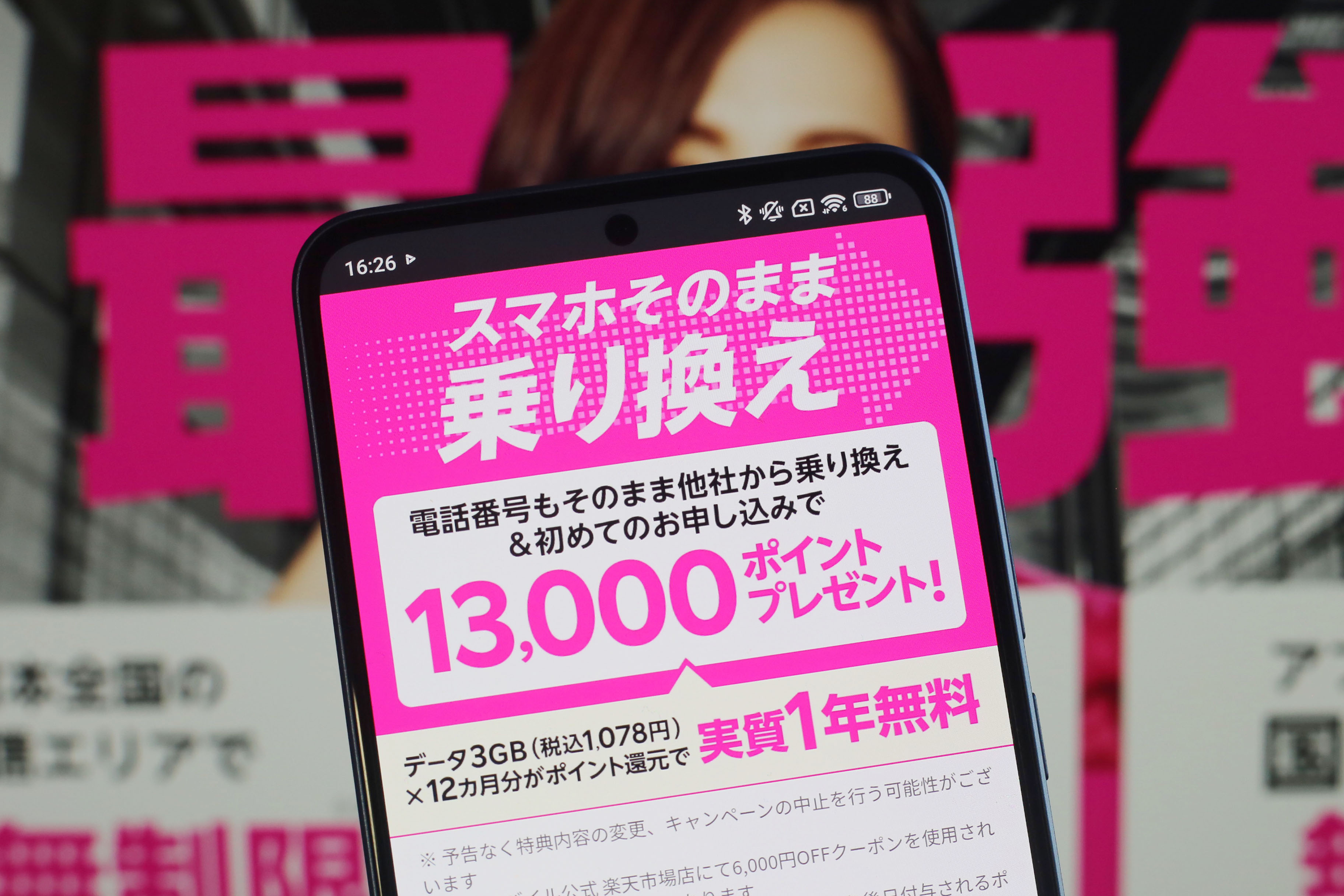 【超増量】初めて楽天モバイルのRakuten最強プランに乗り換えで『13,000円』相当ポイント還元!5月プラ...楽天モバイルでは、2024年2月1日(木)から『電話番号もそのまま他社から乗り換え&初めてお申し込みでポイントプレゼント!』キャンペーンで付与するポイントを通常の6...