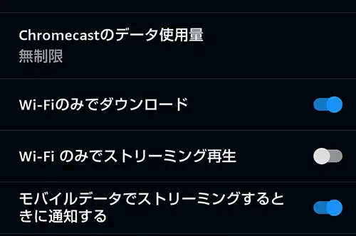 Amazonプライム・ビデオでは、『設定』→『ストリーミング再生・ダウンロード』→『Wi-Fiのみでダウンロード』からON/OFFが可能。
