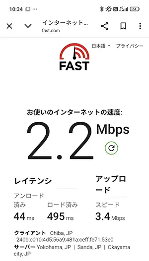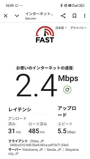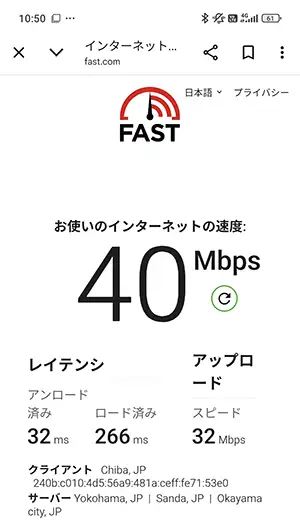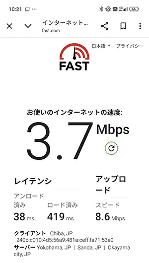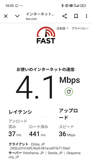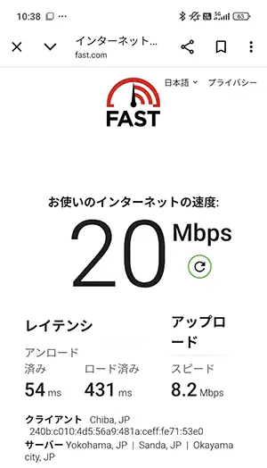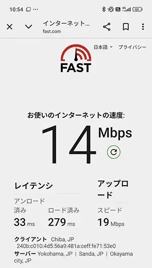 通信速度の計測(fast.com)は、私の乗っている車両が駅のホームに入ってから開始。『下り(ダウンロード)』はホーム内で計測を終えていますが、『上り(アップロード)』に関しては電車がホームを少し離れてから完了しているので精度低め。