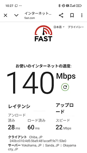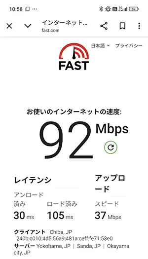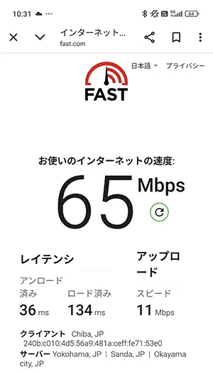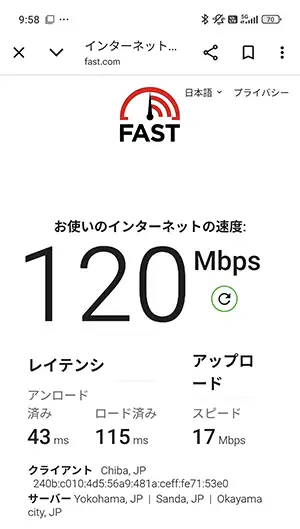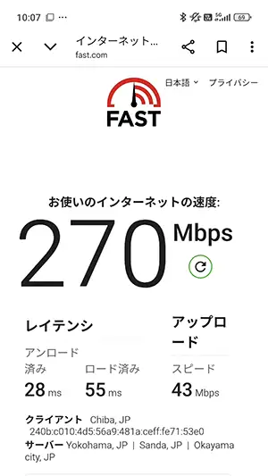 今回実測した中で、一番下り(ダウロード)速度がはやかったのは『270Mbps』を記録した駒込駅(上りも43Mbpsとはやい部類)。5Gで安定的に通信が行われていました。