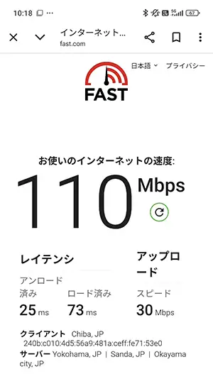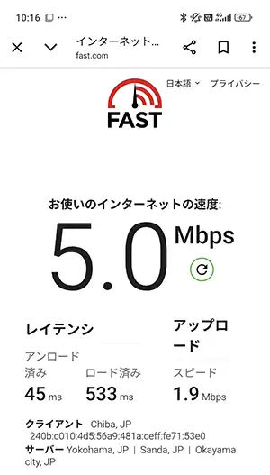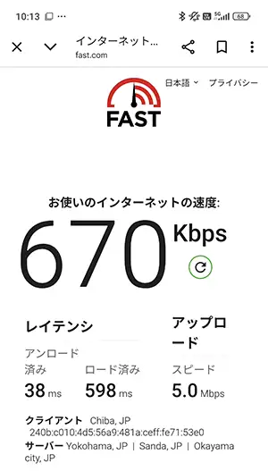 日暮里も下り『670kbps』と冴えない結果に。5Gではなく4Gで通信していた時間が長いように感じました。