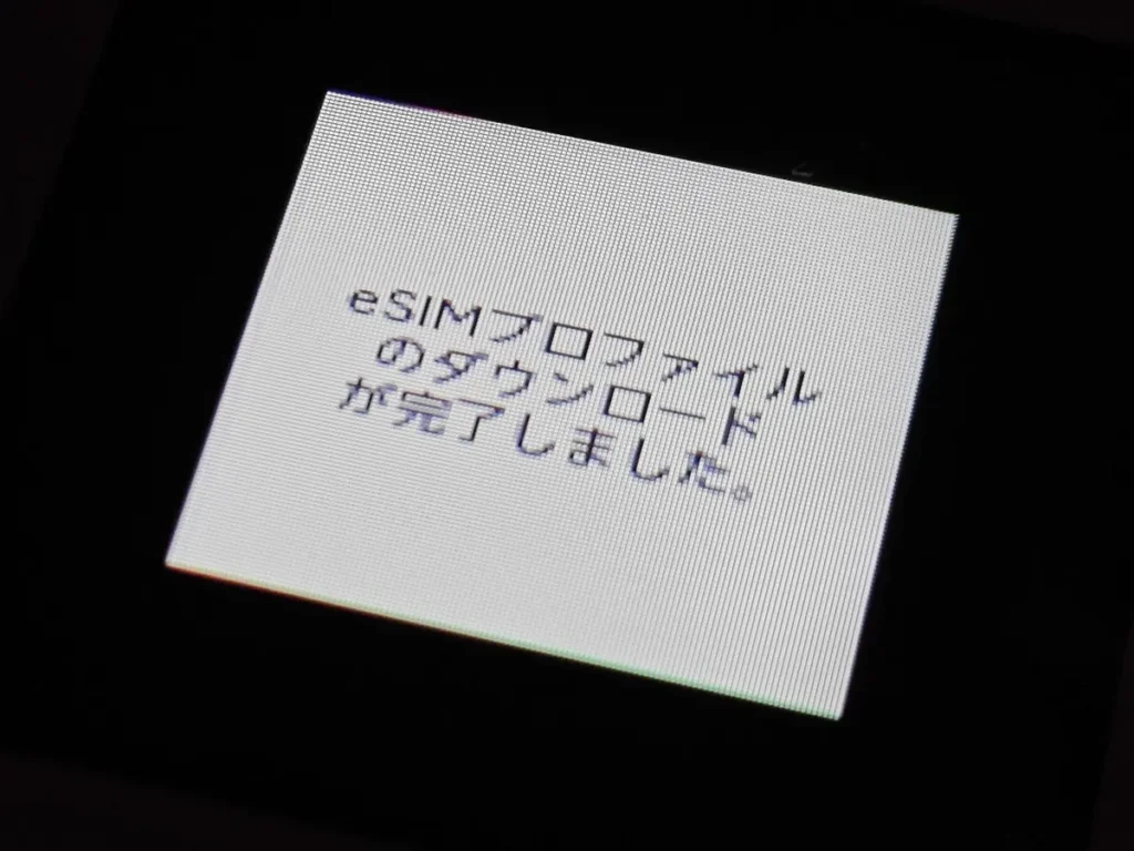 27.eSIMのダウンロードが完了すると、Rakuten WiFi Pocket 5Gの画面に『eSIMプロファイルのダウンロードが完了しました』と表示