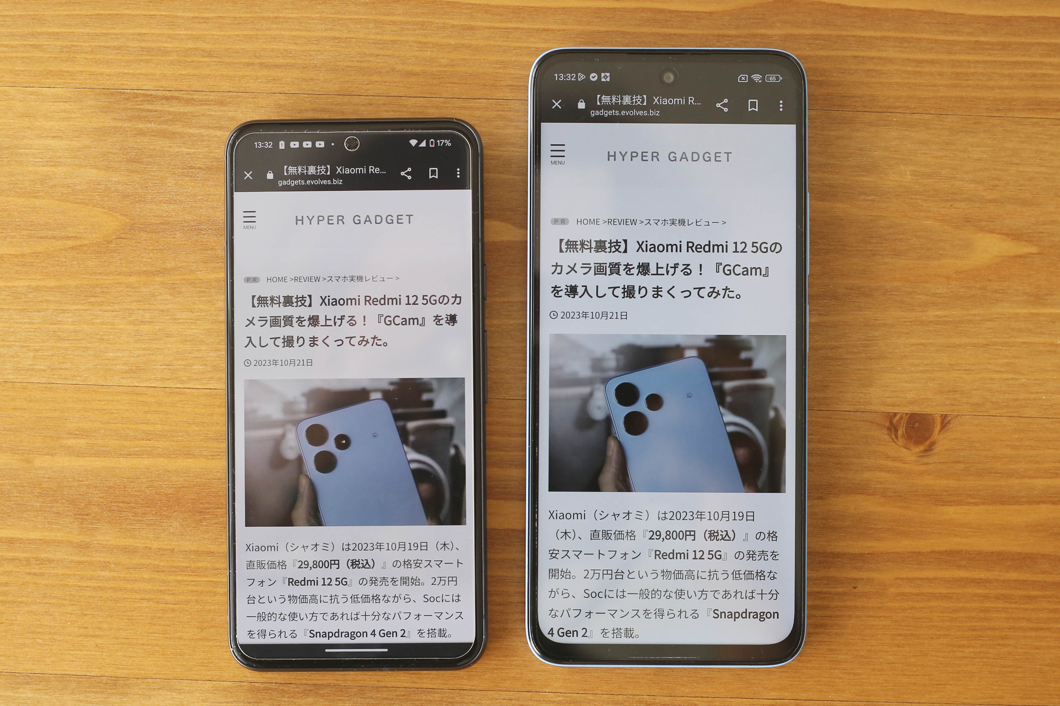 Redmi 12 5Gの画面サイズは『6.8インチ』。6.1インチの『Pixel 8』を隣に置くと、改めて『大きいな』と感じます。
