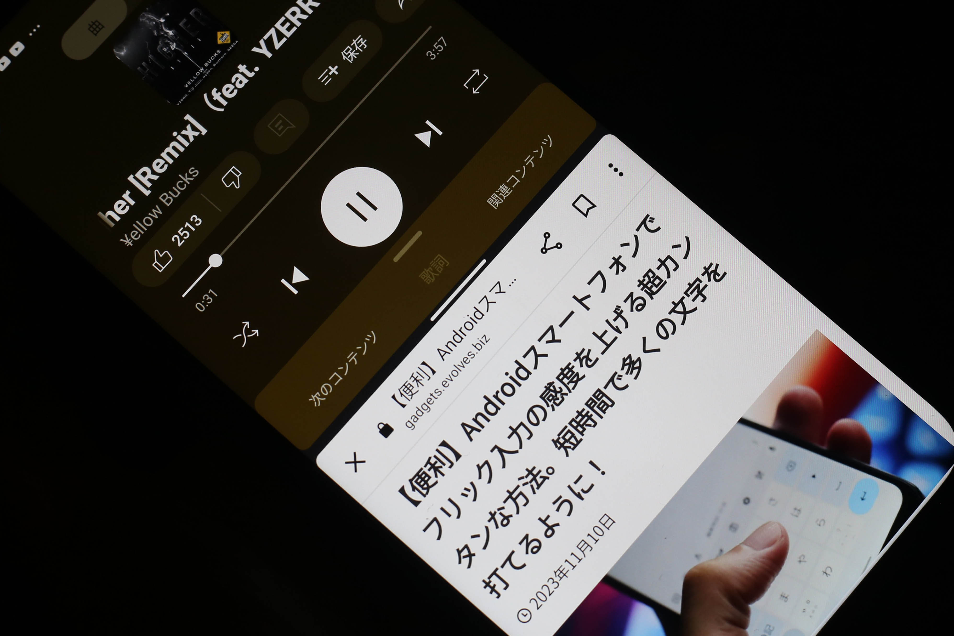 上でYouTube Music、下でブラウジングOK!画面分割を実用的に使える