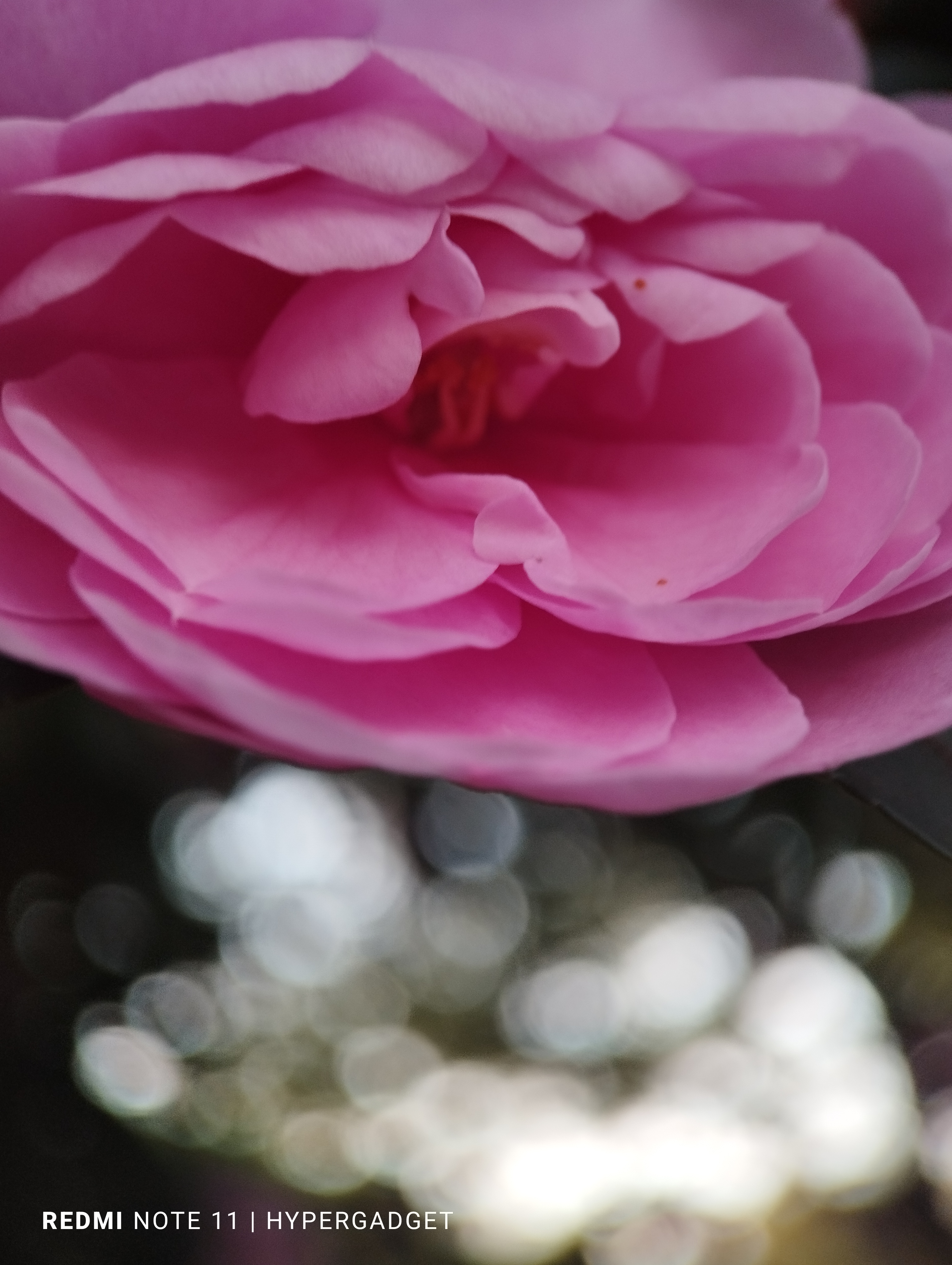 極めつけがこの一眼レフサイズの玉ボケです。大きな玉ボケを作るには、本来大型イメージセンサーを搭載するカメラが必要。マクロレンズを使えば格安スマホ『Redmi Note 11』でも極上の玉ボケを得られます。