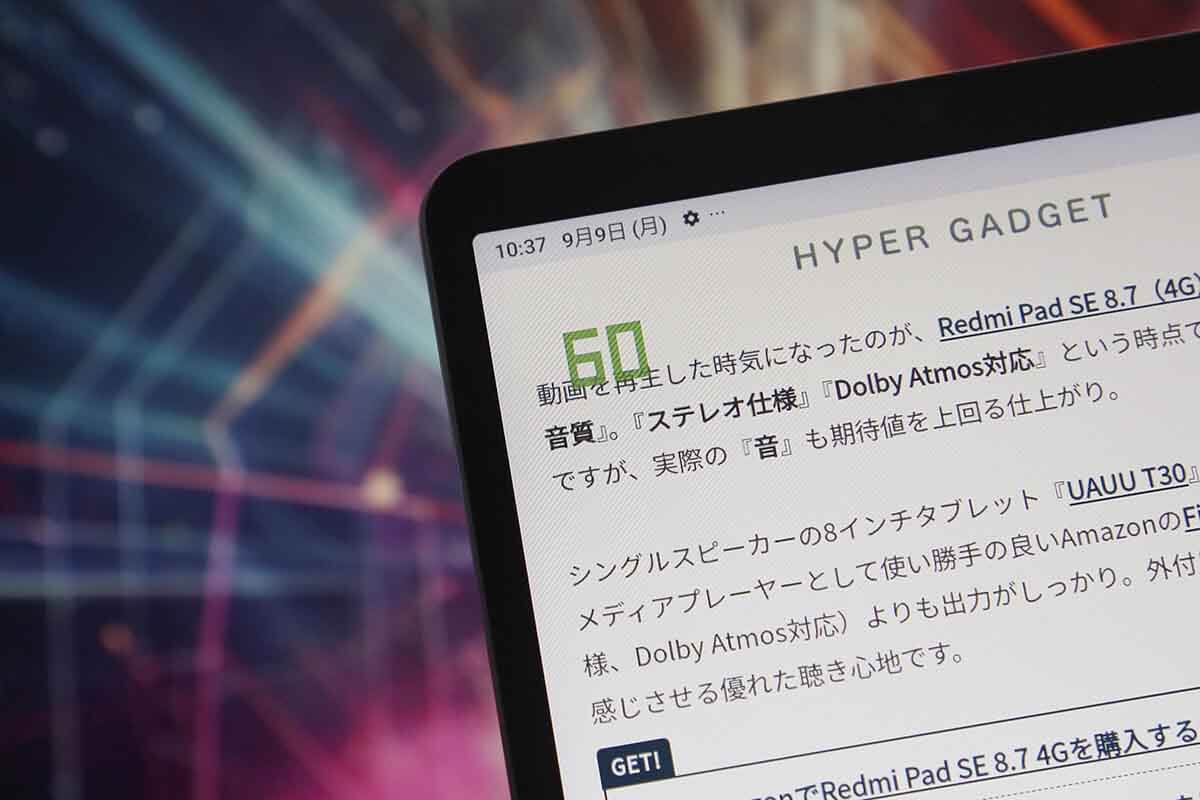 私は日常的に90Hz~120Hzのリフレッシュレートに対応する端末を使用しているので、60Hzでは正直滑らかさが物足りない。『動画を観る』『電子書籍を読む』といった使い方では満足ですが、ブラウジング用途ではイマイチな評価。