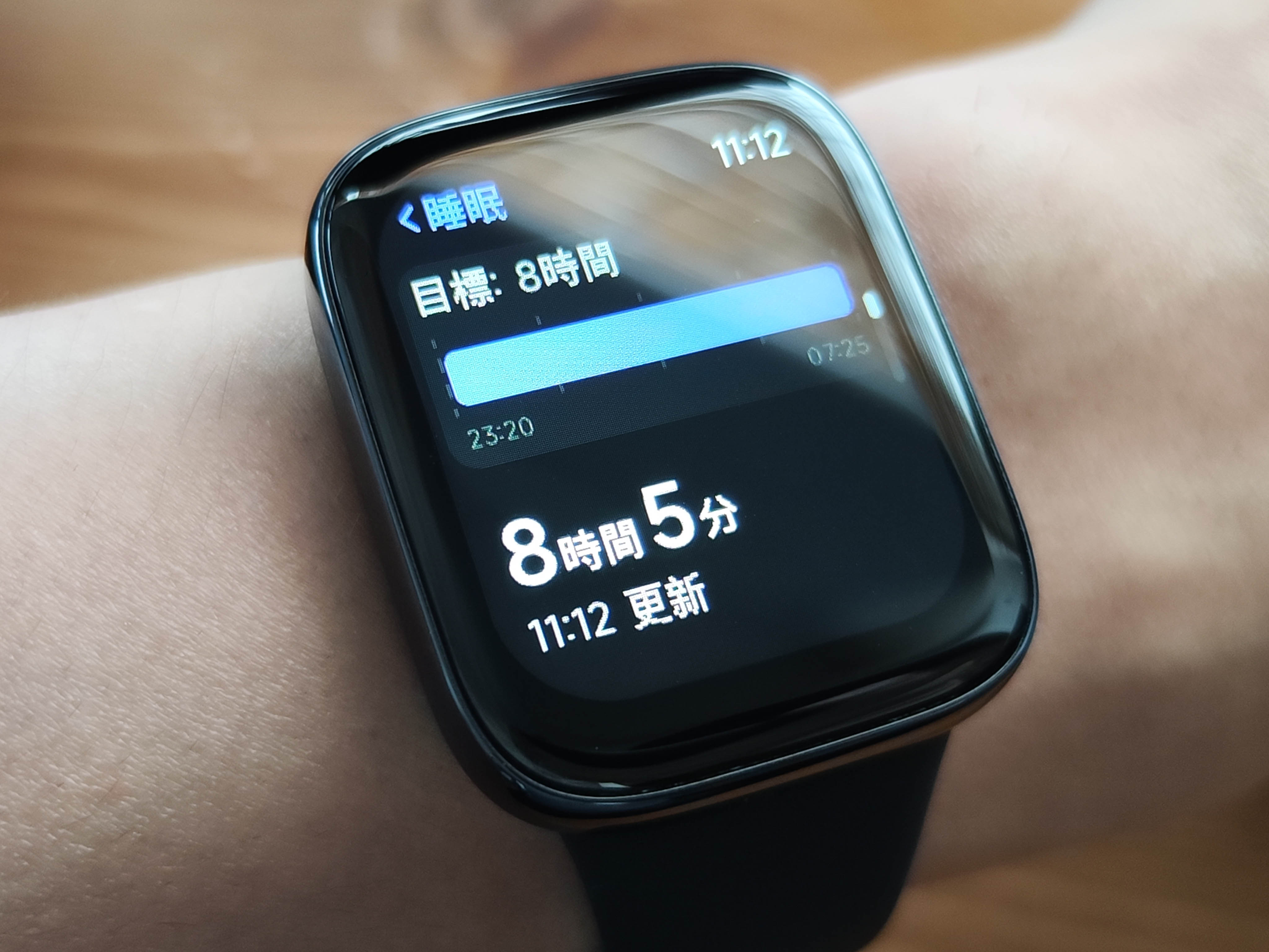 Redmi Watch 3 Activeは1.83インチの大画面なので、1日を通してヘルストラッキングするなら『スマートバンドと使い分ける必要があるのでは』と考えていました。しかし驚いたことに、寝ている時に着けていても全く違和感がない。