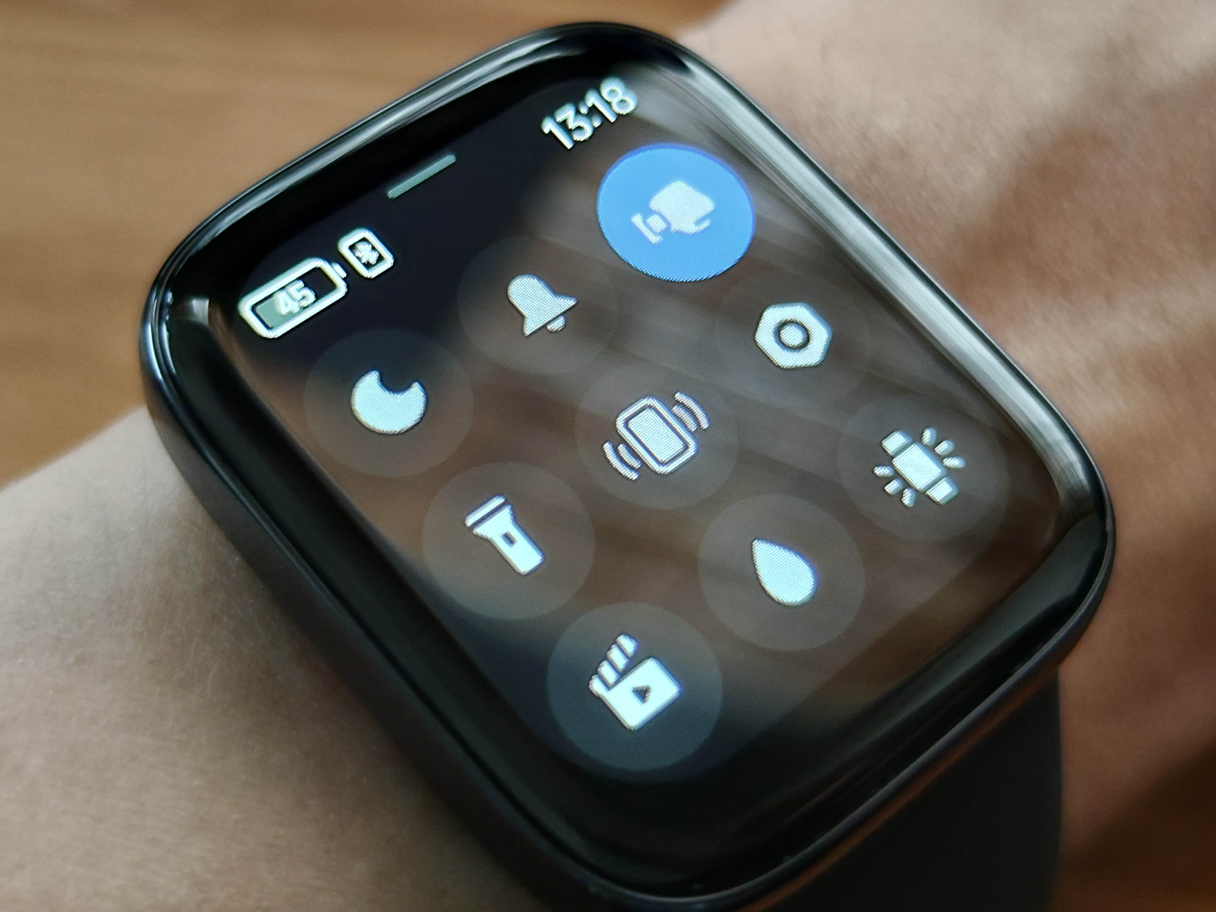 Redmi Watch 3 Activeの画面操作はスマートウォッチの『ジェスチャー』に近いです。画面の端をスワイプするので、ラウンドエッジ加工は見た目の高級感と共に操作性も向上させています。