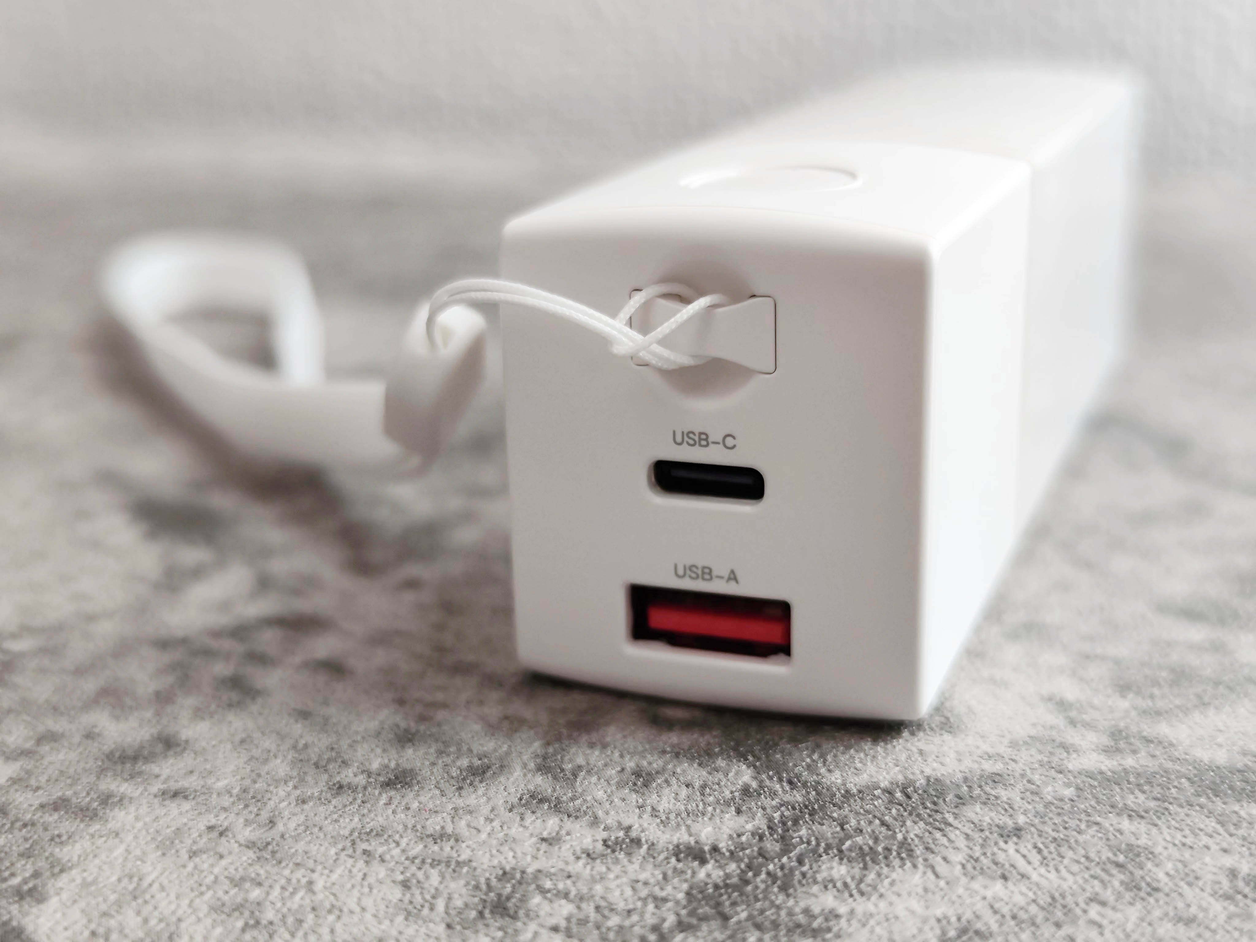 『USB Type-C』ポートは入力と出力どちらにも対応しており、USB-Aポートと合わせて2台同時充電が可能。USB Type-Cポートは『5V/3A』『9V/2.22A』『12V/1.67A』の出入力、USB-Aポートは『5V/3A』『9V/2A』『12V/1.5A』の出力に対応。USB Type-Cポートの方が若干最大出力は強めです。