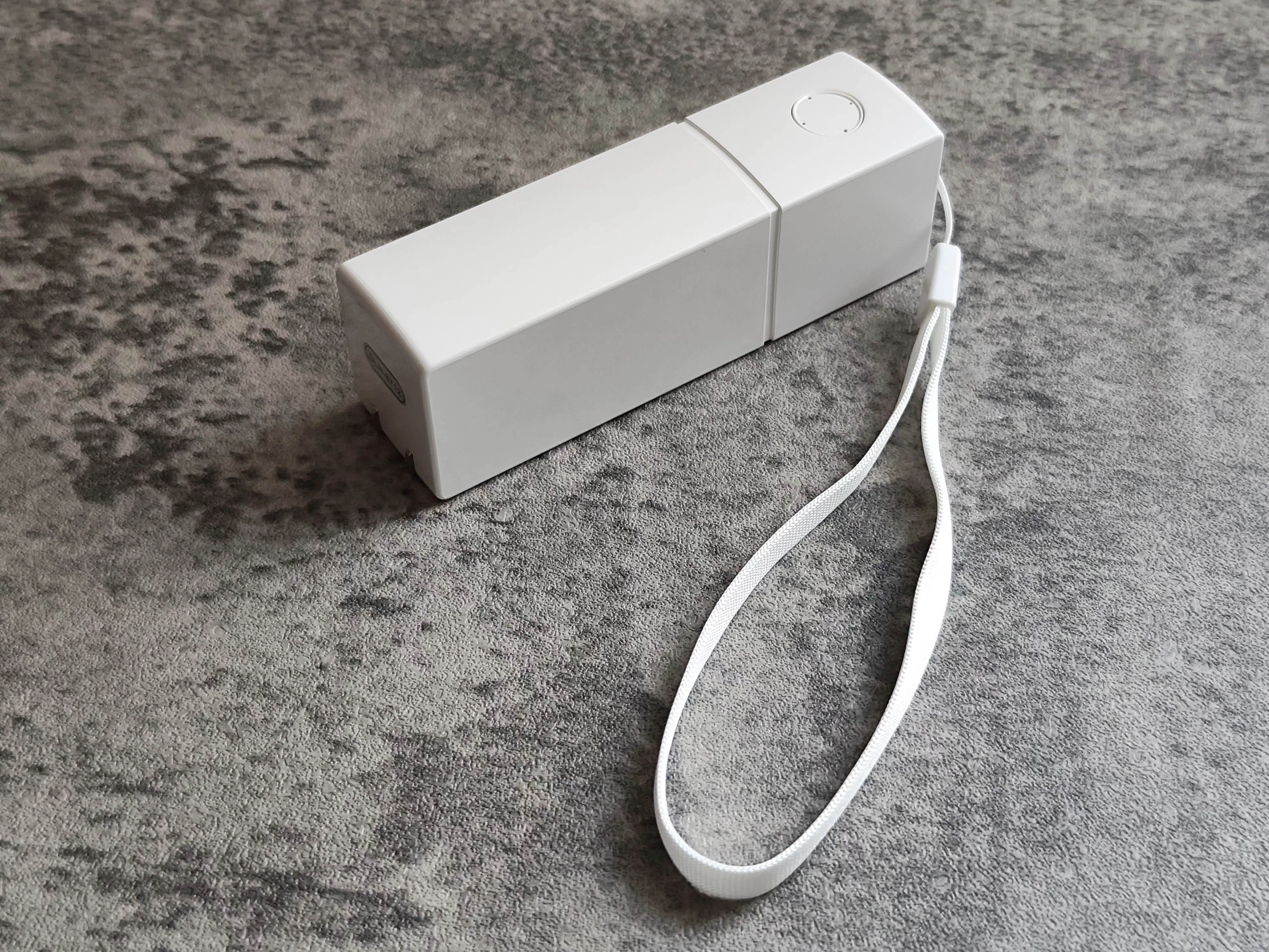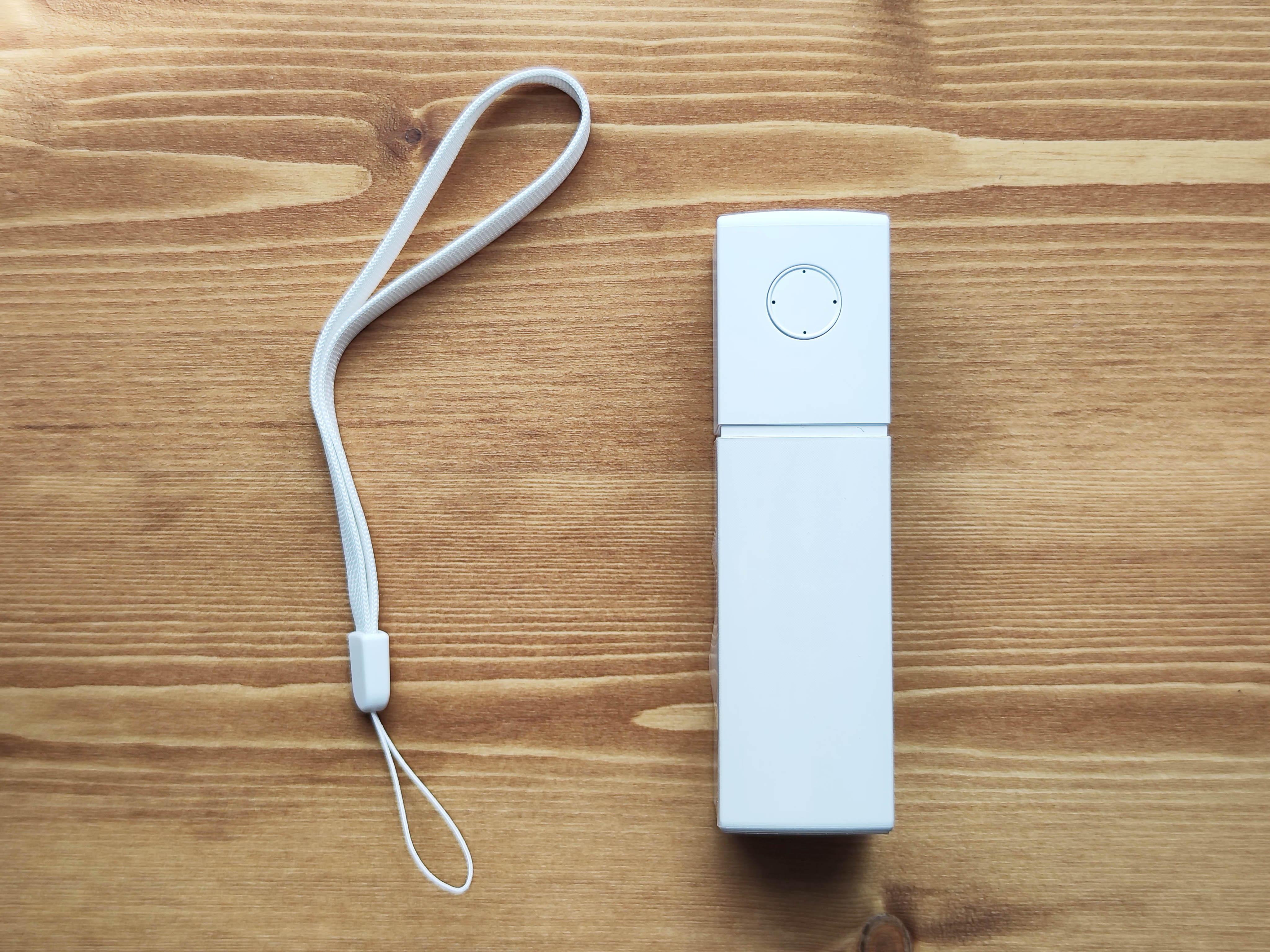 デザインはカバンに入れやすく(ストラップが付いているので下げることも可能)、見た目もお洒落なスティック型。サイズが『110×31×35mm』で重量は『約151g(実測したところ150.6g)』。十分軽量コンパトな部類です。日常的にカバンに入れっぱなしでも気にならないレベル。