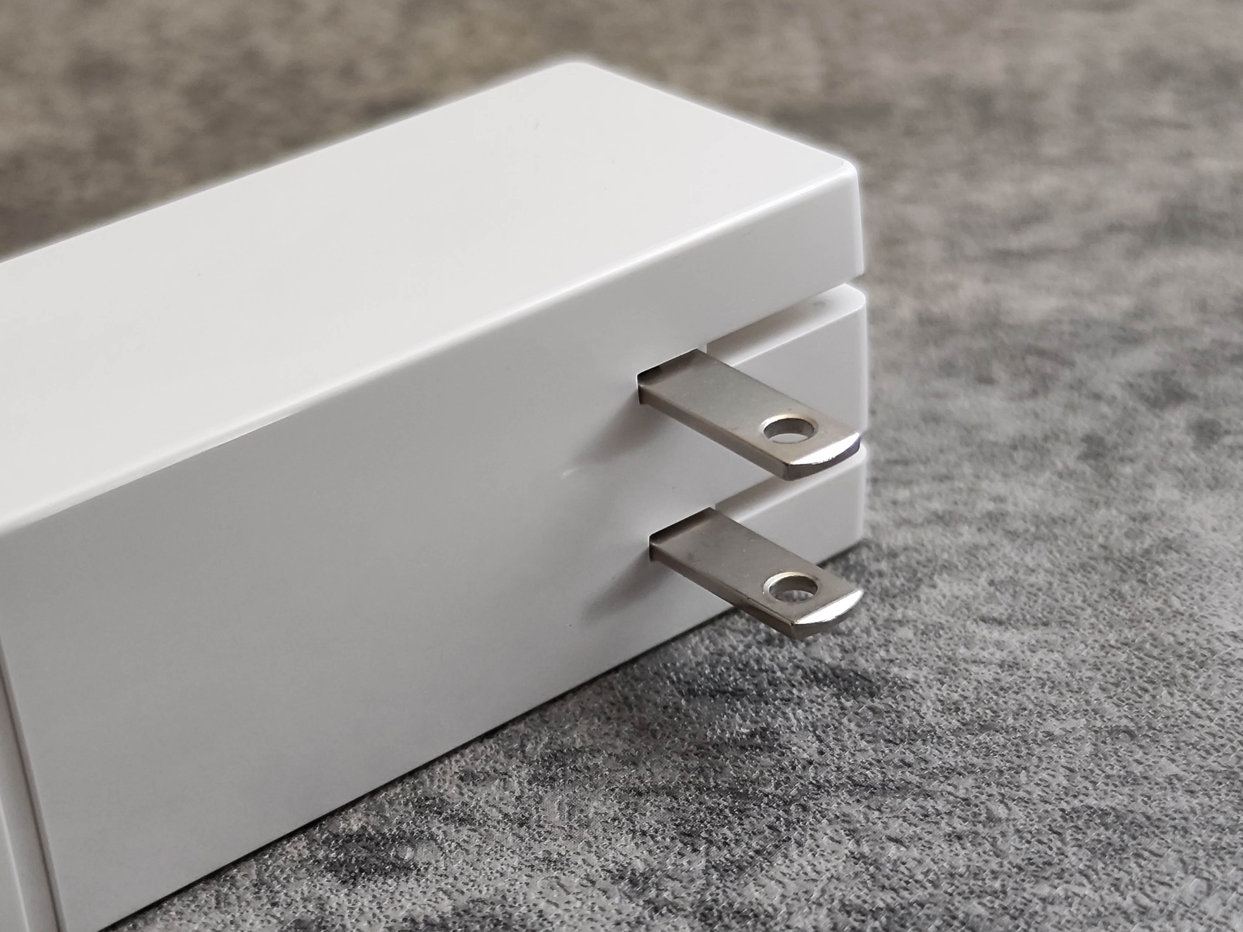 充電器本体には傷が付かない様にフィルムが貼られており、上部分が光沢なし、下部分は鏡面仕上げで程よく高級感あり。画像のイメージと大差はないですね。