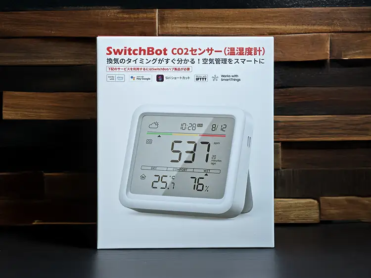 夏場はクーラーをつけて窓を閉め切った状態になるので、二酸化炭素濃度が上がりやすい傾向に。仕事の効率を高めるために、私が選んだのは『SwitchBot』の製品(以前温湿度計を購入)。