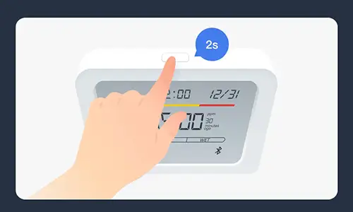 CO2センサー(温湿度計)上部のボタンを2秒間長押し。ディスプレイにBluetoothのマークが表示されたら『デバイスに接続』を選択。
