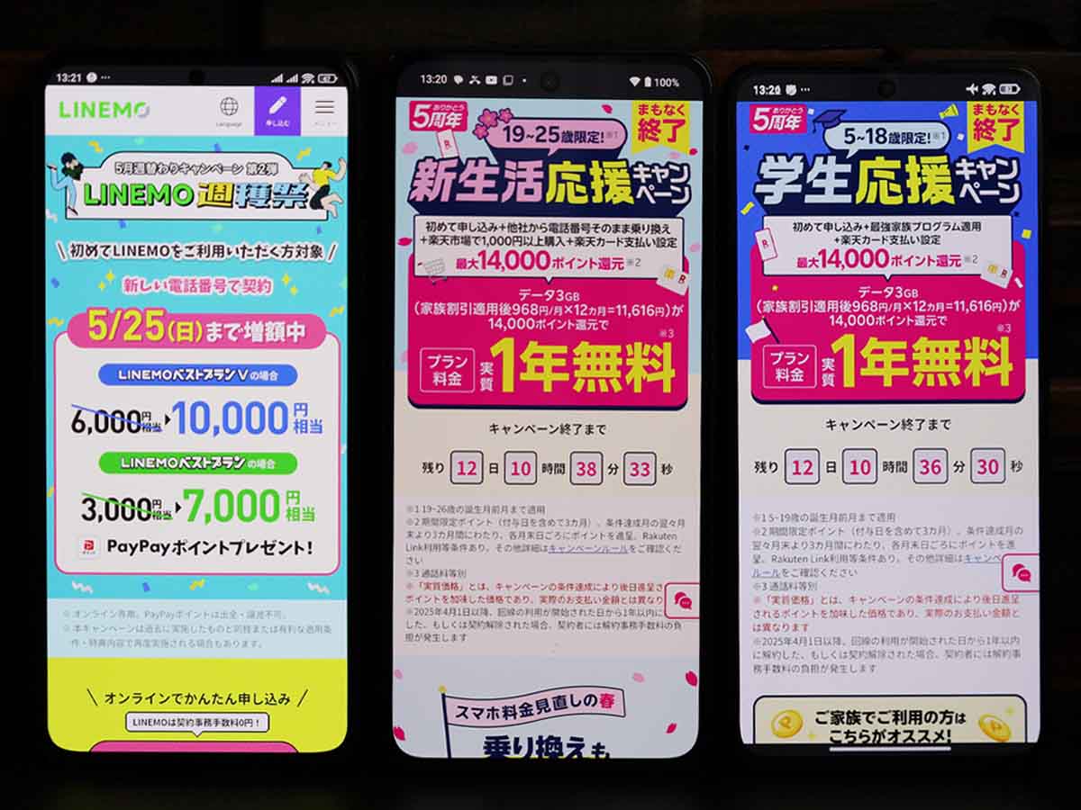 【5月】楽天モバイル、ワイモバイル、LINEMOの『おトク』が終了間近。滑り込め!