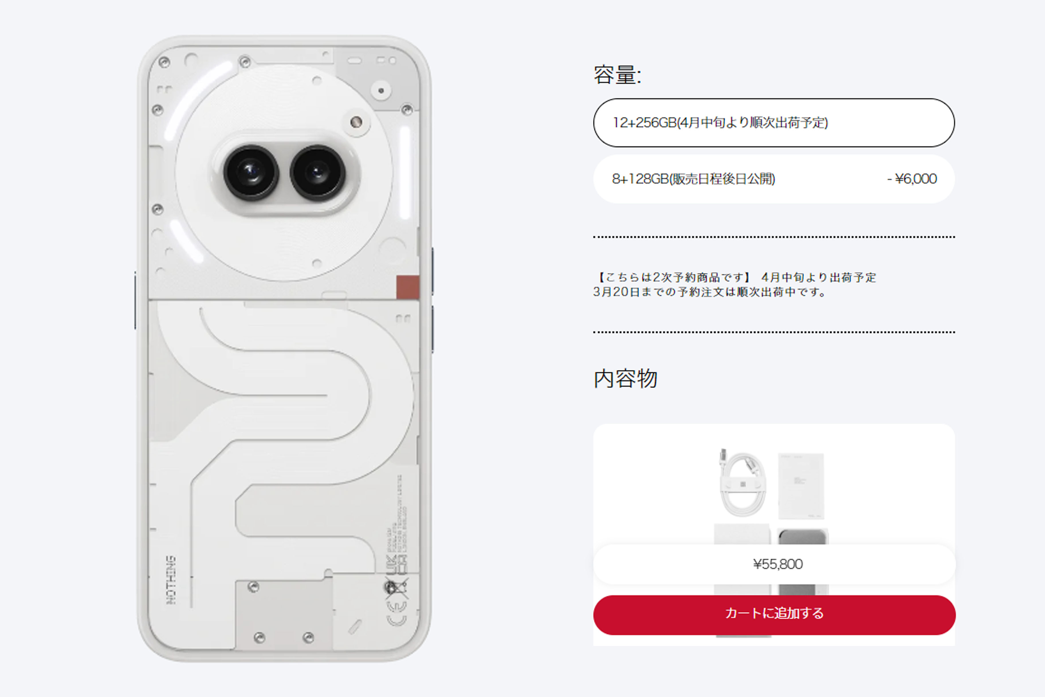 通知Nothing?Phone(2a)の予約受け付けがいつの間にか再開。4月中旬から出荷予定