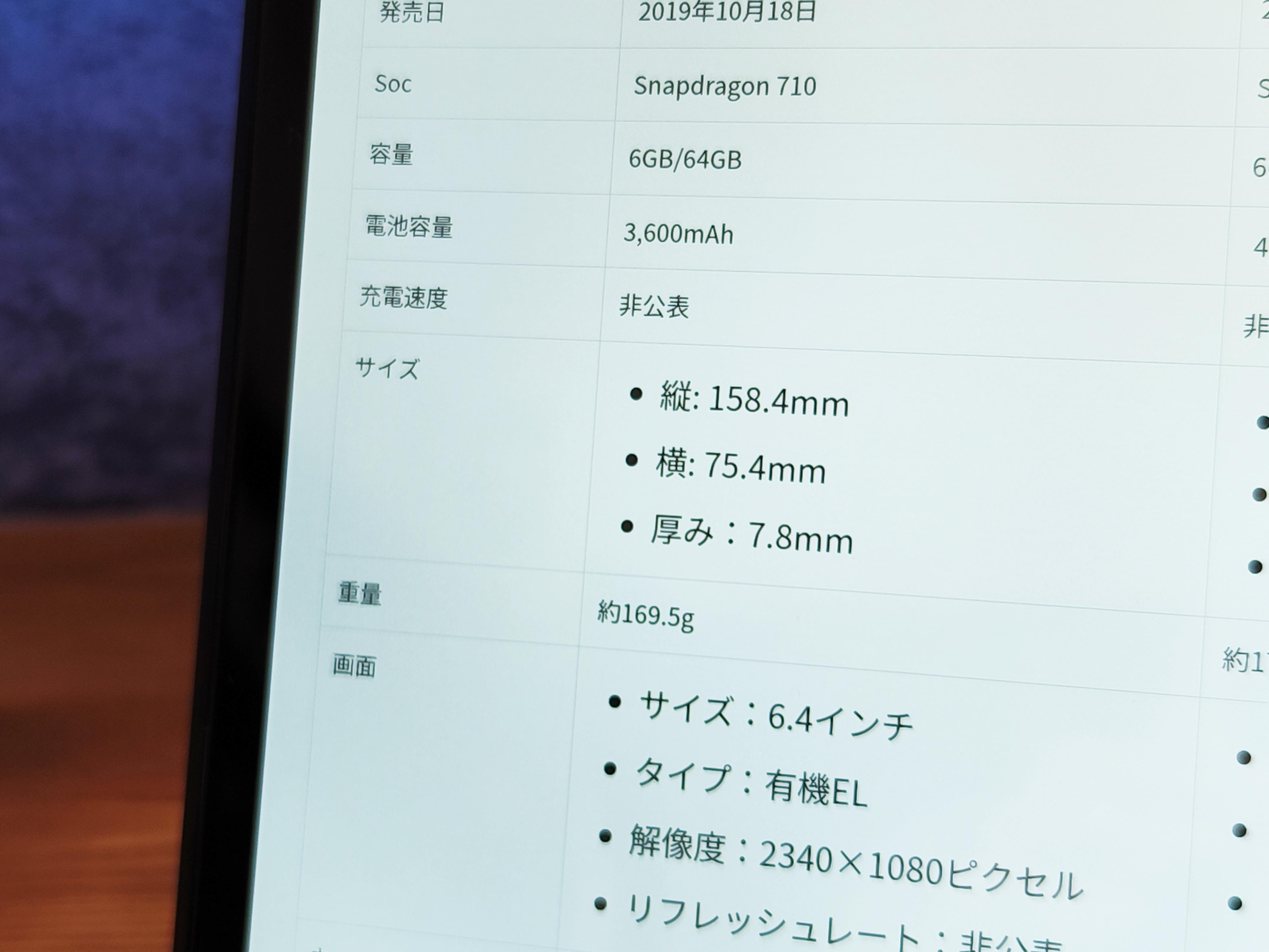 | ディスプレイ | タイプ:液晶(IPS)、解像度:フルHD、 |
