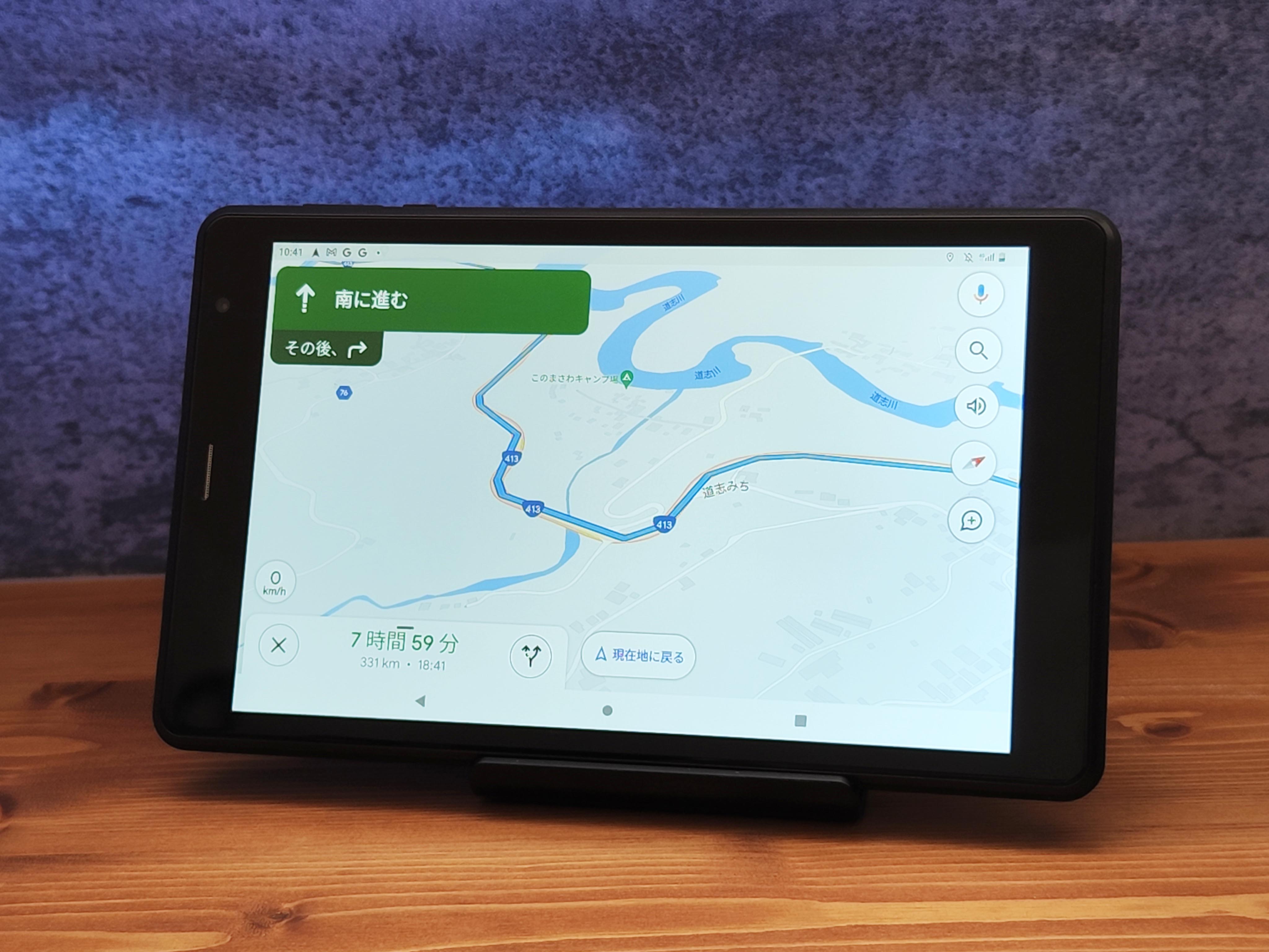 『SIM』に加えて『GPS』も使えてしまうUAUU T30。Googleマップを8インチの大画面に表示して、ナビとして利用可能。
