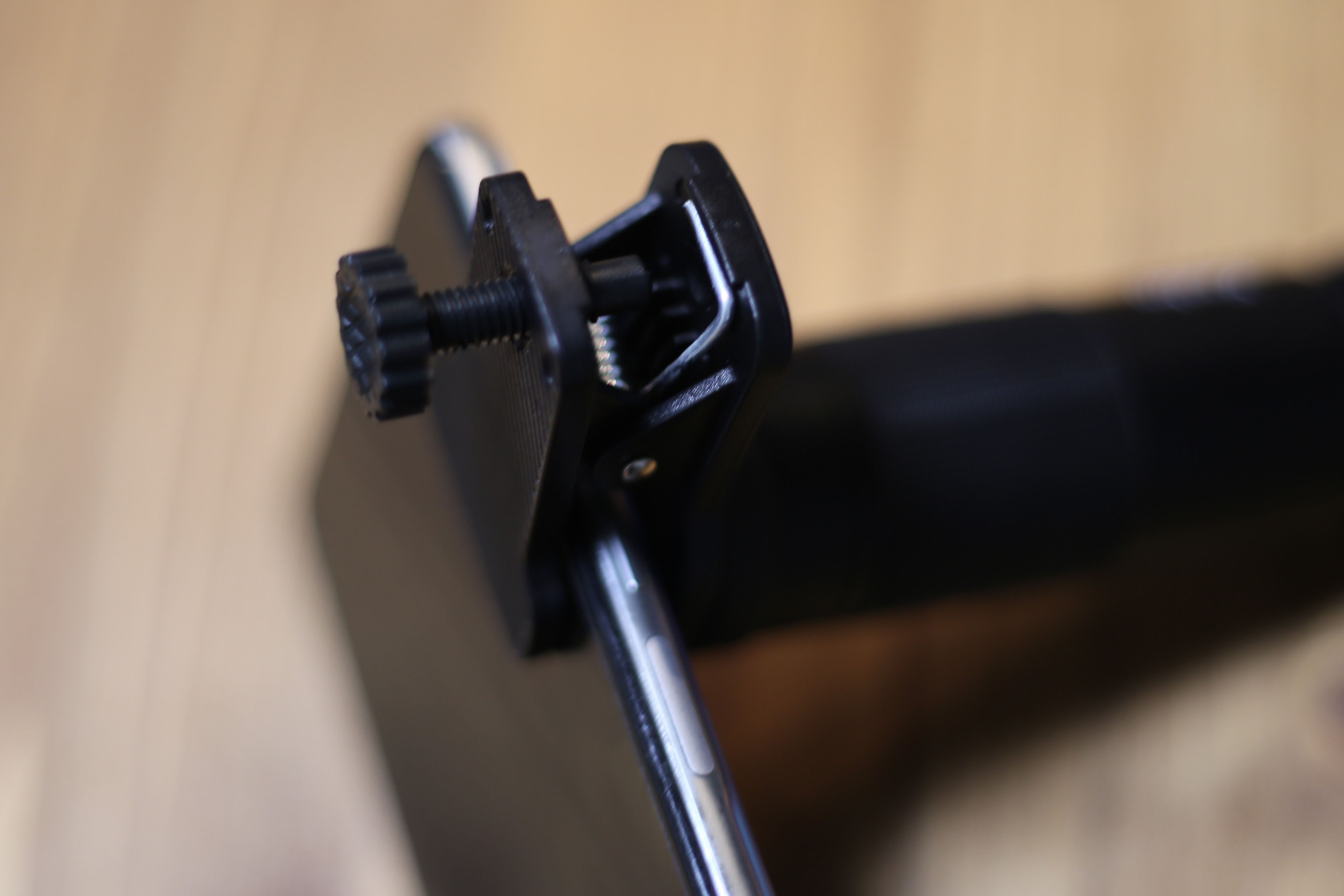 クリップ背面のネジを締めるとかなりしっかりと固定されます。スマートフォンに触れる部分はゴム素材になっているので安心です。