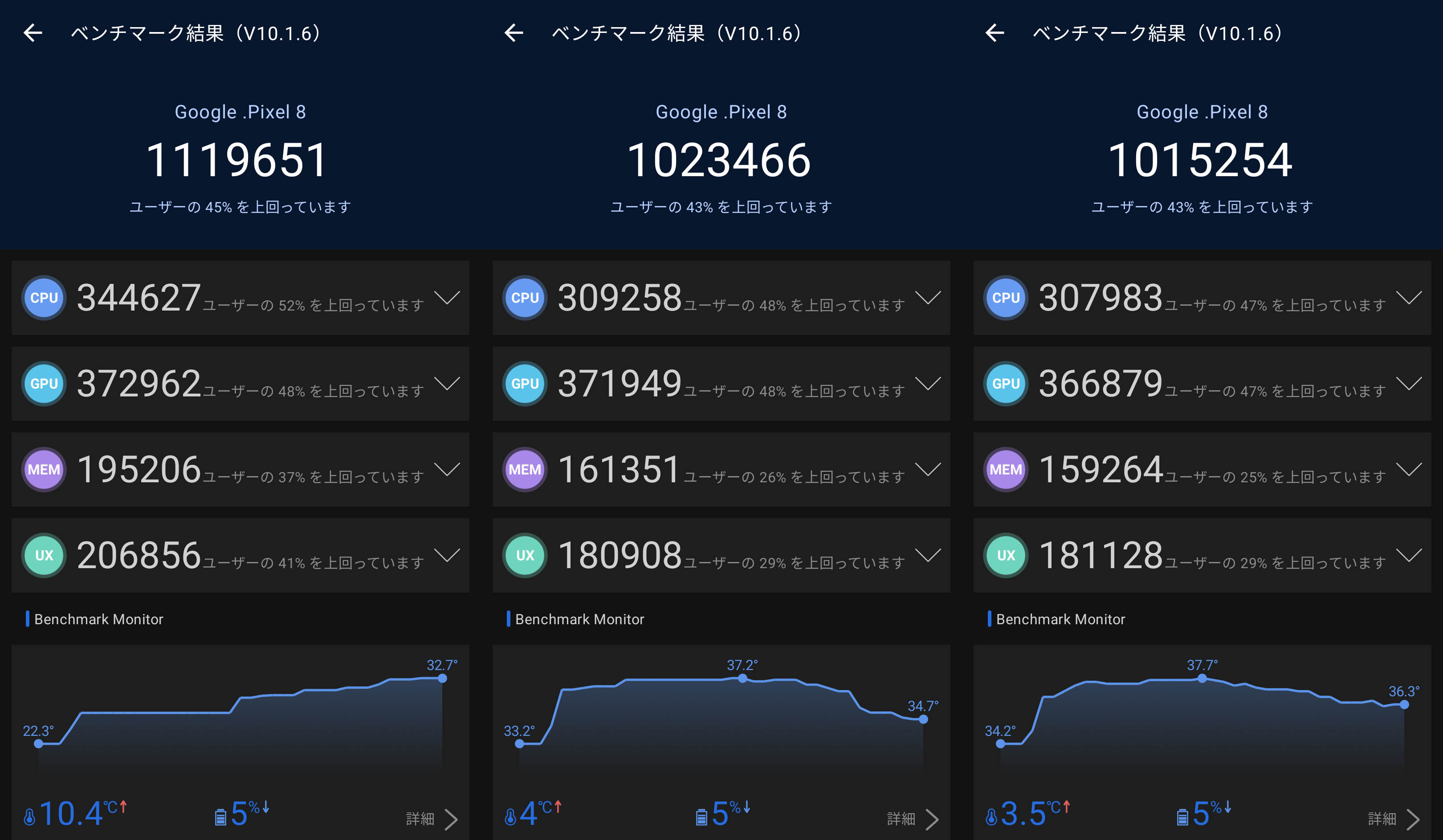 Xiaomi 13T Pro、Xiaomi 12T Pro、Pixel 8のAnTuTu Benchmark(Ver.10)実測スコア