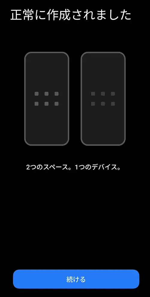 3.『正常に作成されました』と表示されたら『続ける』を選択