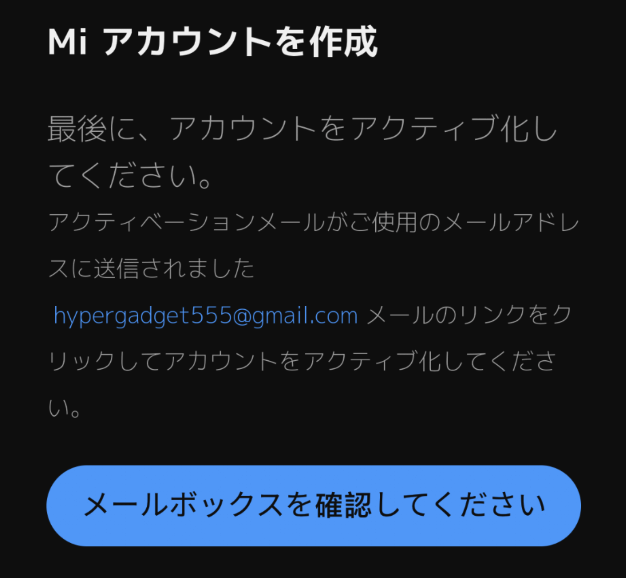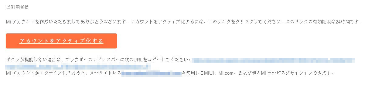 登録したメールアドレス宛にXiaomiからメールが届きます。私はメール内にある『アカウントをアクティブ化する』を選択したらエラーになりました。