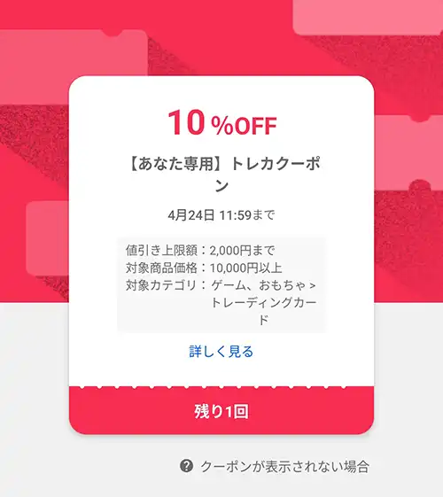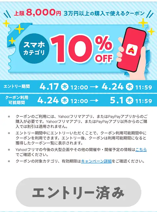 また、Yahoo!フリマでは定期的に『クーポン』を配布(エントリーなど必要な場合あり)。中には最大『10%OFF』といった利益度外視な大盤振る舞いも。
