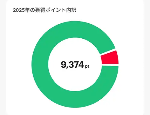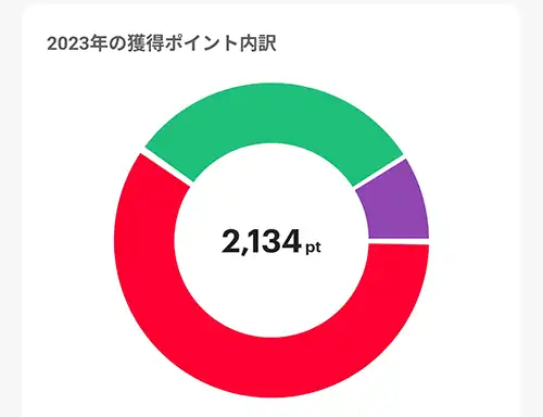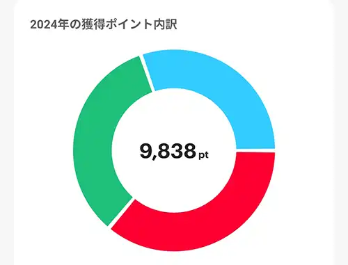 2023年度は総獲得ポイントが『2,134ポイント』止まり。2024年はそれが『9,838ポイント』に増え、2025年に関しては4月23日時点ですでに『9,374ポイント』獲得。加えて『7,527ポイント』が付与予定となっています(つまり合計16,901ポイント)。